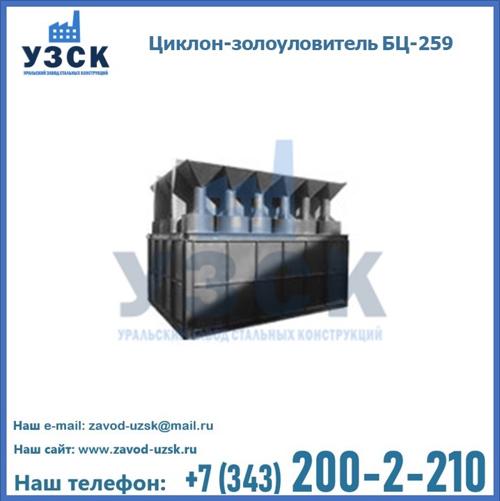 Если вы планируете купить то или иное оборудование, например, циклоны-золоуловители БЦ-259, то рекомендуем заказать данный товар на сайте УЗСК. Мы производим и реализуем продукцию высокого качества по приемлемой цене. Эксперты Уральского Завода Стальных Конструкций в Нижневартовске проконсультируют вас по всем вопросам, помогут сделать выбор и оформить заказ без лишних временных затрат. Мы гарантируем соответствие нашей продукции всем требованиям ГОСТ и ТУ, а также износостойкость и высокую производительность предлагаемого оборудования. Если требуется изготовить циклон нестандартных размеров, то такой вариант выполнения заказа тоже предусмотрен, так как предприятие имеет собственные производственные площади и надежных поставщиков. На все поставляемое или производимое оборудование имеются чертежи и прочая техническая документация. Заказать и купить циклоны или прочее оборудование высокого качества и по доступной цене можно через наш сайт или по указанному в разделе «Контакты» телефону.