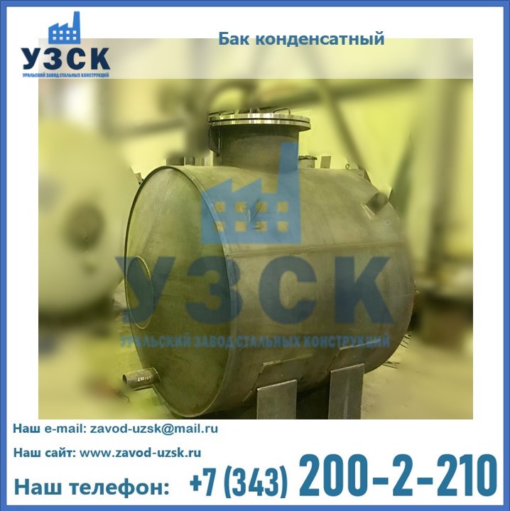 Многие заказчики стараются конденсатные баки купить по выгодной цене в компании «УЗСК» в Нижневартовске. Причин несколько. Производитель поставляет емкости с полным комплектом лестниц, площадок обслуживания. Бак после гидравлических испытаний покрывают специальной внутренней и наружной краской, накладывают теплоизоляцию или наваривают крепеж для навески минматов. Условия теплоизоляции согласуются с заказчиком.