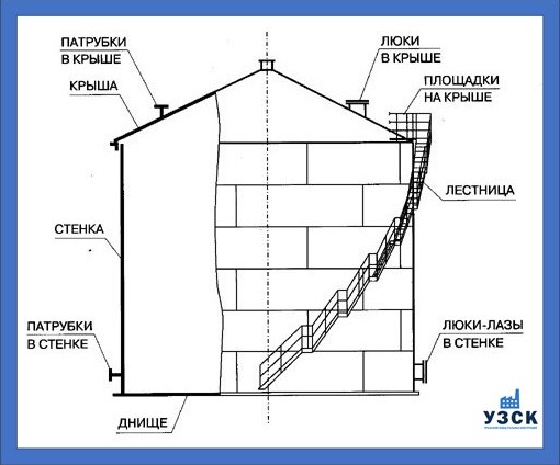 Конструкция резервуара 400 м3 состоит из: