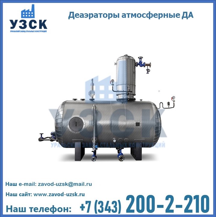 Атмосферные деаэраторы (сокращенное обозначение — ДА) предназначены для удаления газообразных веществ, способных вызвать коррозии (в частности, подразумевается кислород и свободная углекислота) из подпиточных вод паровых котлов и систем теплоснабжения.